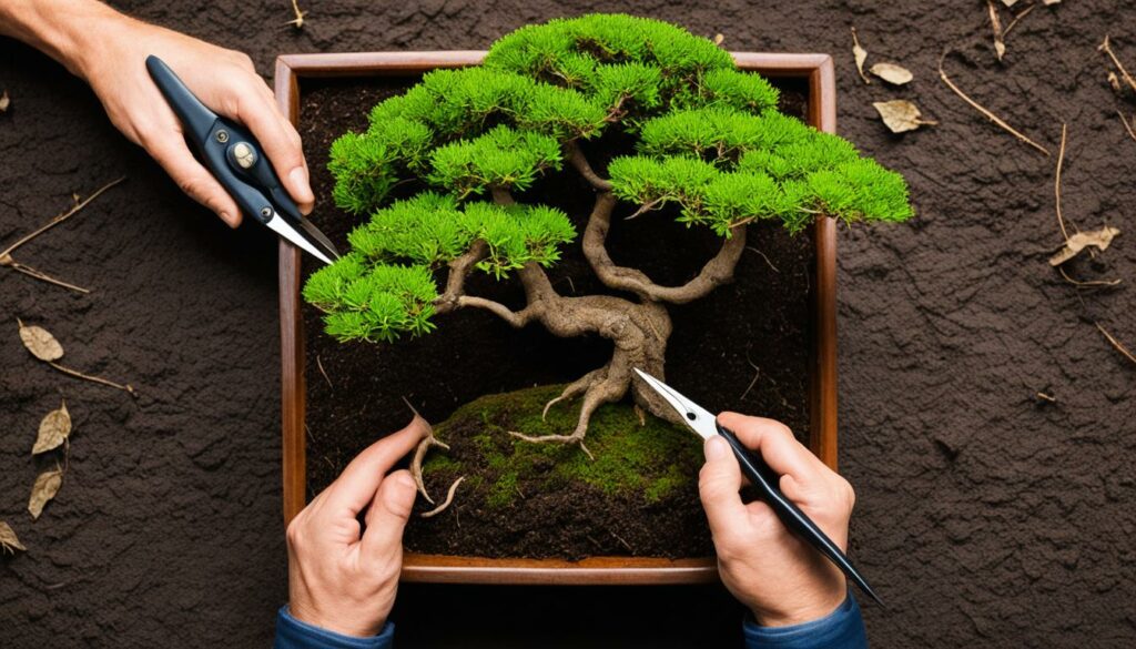 Remember to only remove about one-third of the root mass, as removing too much can shock and damage your bonsai. It’s also crucial to give your bonsai plenty of water and nutrients after root pruning to help it recover.